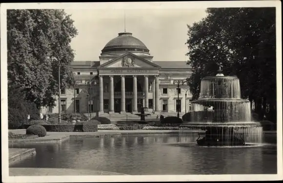 Ak Wiesbaden in Hessen, Kurhaus, Außenansicht, Springbrunnen