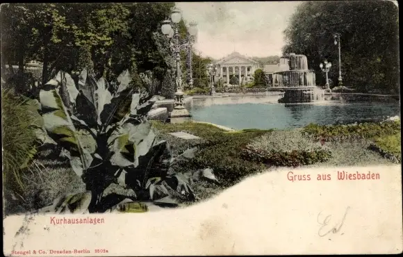 Ak Wiesbaden in Hessen, Kurhausanlagen, Springbrunnen