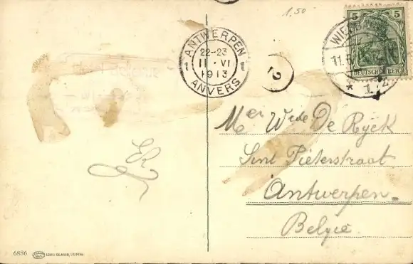 Zustand, siehe Scan, gelaufen, 1913 - ca 9 cm X 14 cm