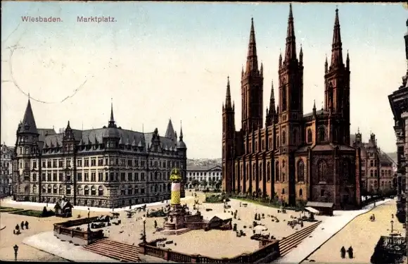 Ak Wiesbaden in Hessen, Marktplatz, Kirche