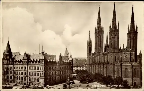 Ak Wiesbaden in Hessen, Marktplatz, Kirche