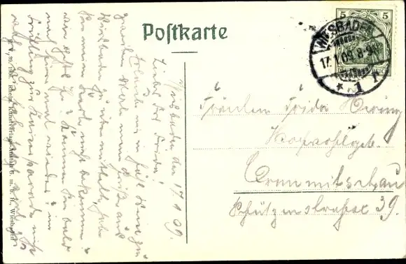Zustand, siehe Scan, gelaufen, 1909 - ca 14 cm X 9 cm