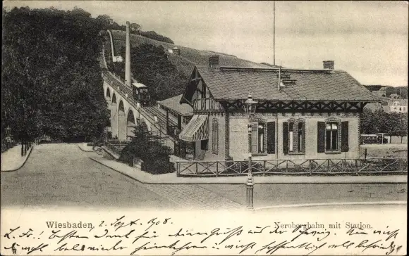Ak Wiesbaden in Hessen, Nerobergbahn mit Station