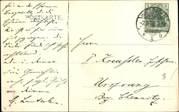 Zustand, siehe Scan, gelaufen, 1908 - ca 14 cm X 9 cm