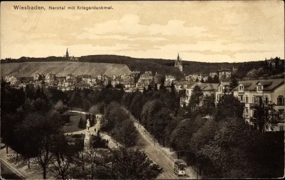 Ak Wiesbaden in Hessen, Nerotal mit Kriegerdenkmal