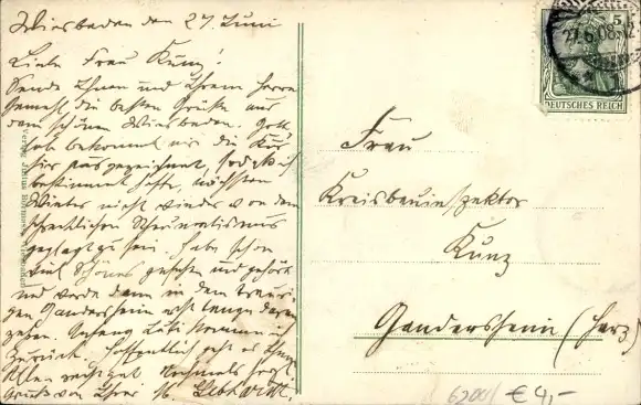 Zustand, siehe Scan, gelaufen, 1908 - ca 14 cm X 9 cm