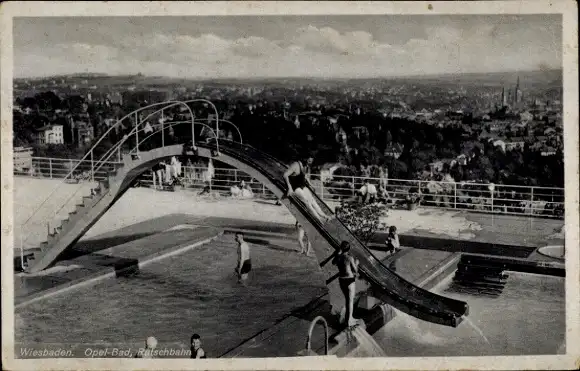 Ak Wiesbaden in Hessen, Opel Bad, Rutschbahn, Stadt