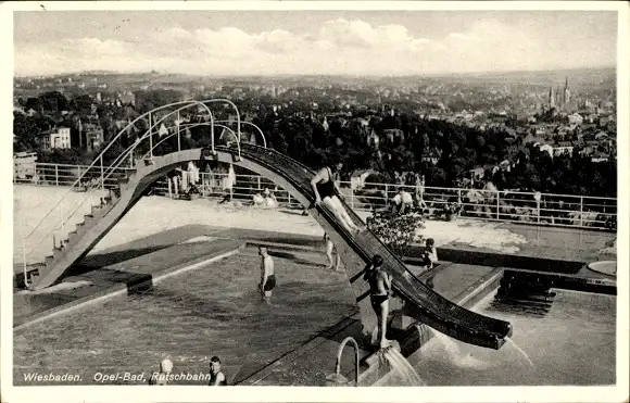 Ak Wiesbaden in Hessen, Opel Bad, Rutschbahn, Stadt