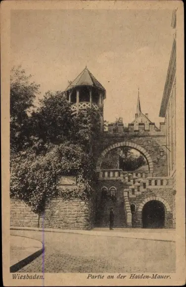 Ak Wiesbaden in Hessen, Partie an der Haiden-Mauer