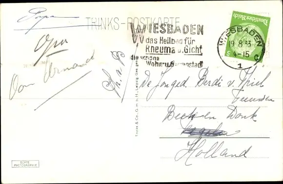 Zustand, siehe Scan, gelaufen, 1933 - ca 14 cm X 9 cm