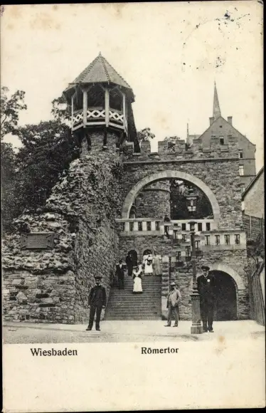 Ak Wiesbaden in Hessen, Römertor, Treppen
