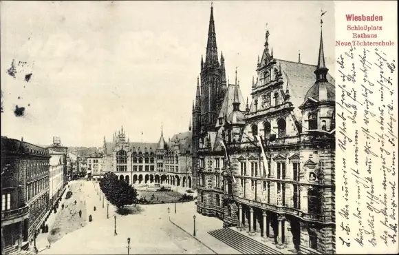 Ak Wiesbaden in Hessen, Schlossplatz, Rathaus, Neue Töchterschule