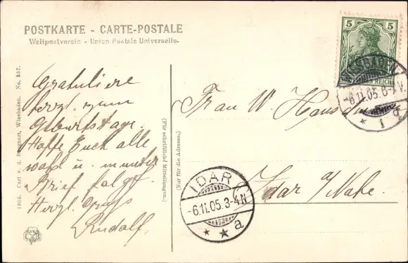 Zustand, siehe Scan, gelaufen, 1905 - ca 14 cm X 9 cm