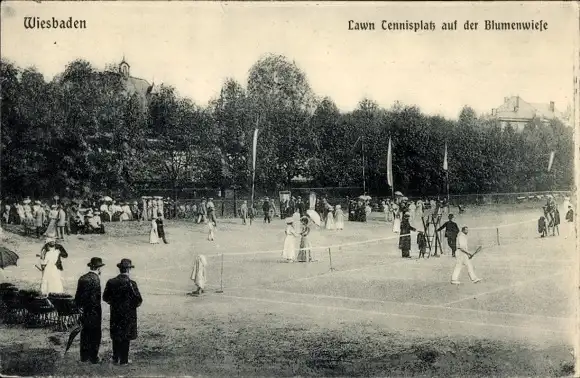 Ak Wiesbaden in Hessen, Tennisplatz auf der Blumenwiese