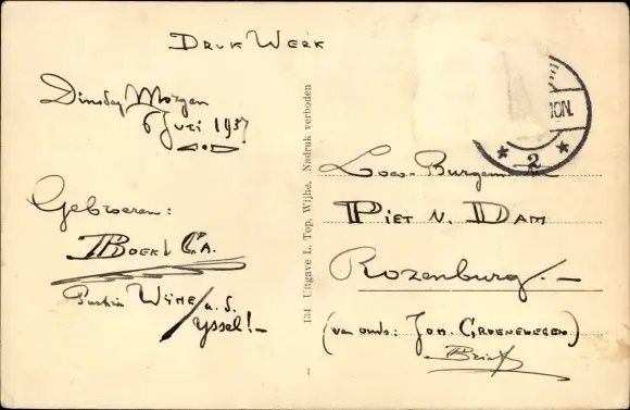 Zustand, siehe Scan, gelaufen, 1937 - ca 14 cm X 9 cm