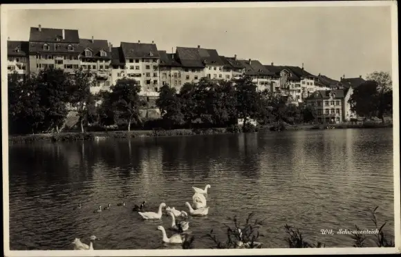 Ak Wil Kt St Gallen Schweiz, Schwanenteich, Panorama vom Ort