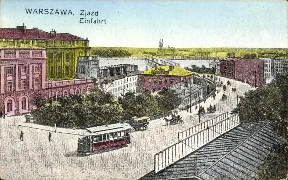 Ak Wilanów Warszawa Warschau Polen, Zjazd Einfahrt, Straßenbahn