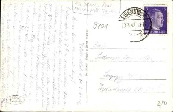 Zustand, siehe Scan, gelaufen, 1942 - ca 14 cm X 9 cm