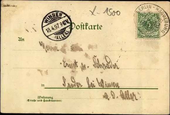 Zustand, siehe Scan, gelaufen, 1897 - ca 14 cm X 10 cm