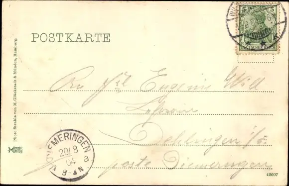 Zustand, siehe Scan, gelaufen, 1904 - ca 14 cm X 9 cm
