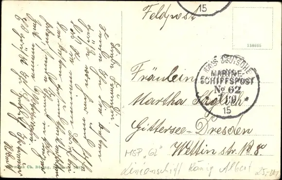 Zustand, siehe Scan, gelaufen, 1915- Stempel Marinepost MSP Nr. 62, Linienschiff König Albert - ca 14 cm X 9 cm