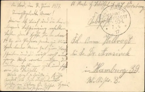 Zustand, siehe Scan, gelaufen, 1917- Stempel MSP 104 - ca 14 cm X 9 cm