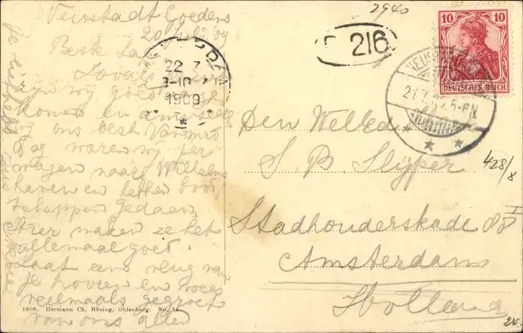 Zustand, siehe Scan, gelaufen, 1909 - ca 14 cm X 9 cm