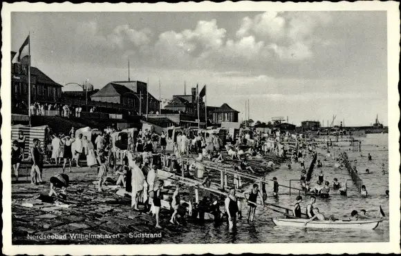 Ak Wilhelmshaven an der Nordsee, Südstrand, Strandleben, Ruderboot