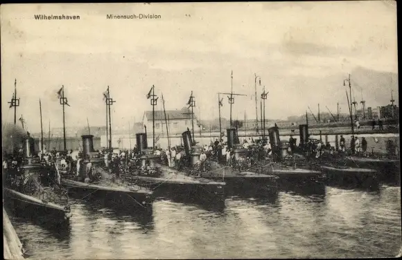 Ak Wilhelmshaven in Niedersachsen, Minensuch Division, Kriegsschiffe