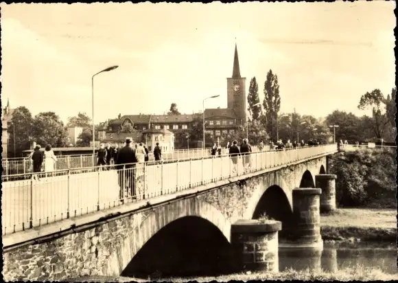Ak Wilkau Haßlau in Sachsen, Muldenbrücke mit Rathaus