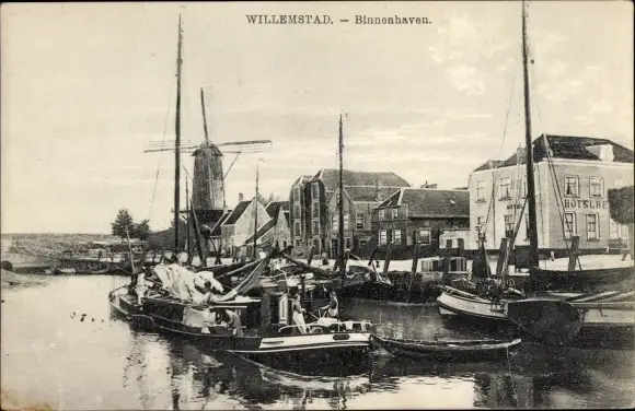 Ak Willemstad Nordbrabant Niederlande, Binnenhaven, Windmühle