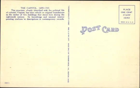 Ak Williamsburg Virginia USA, The Old Capitol Building