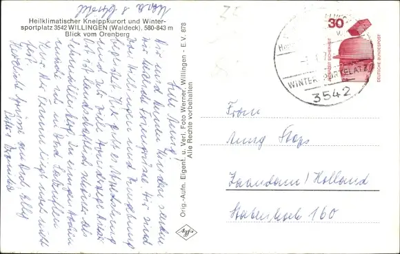 Ak Willingen im Upland Waldeck Hessen, Blick vom Orenberg