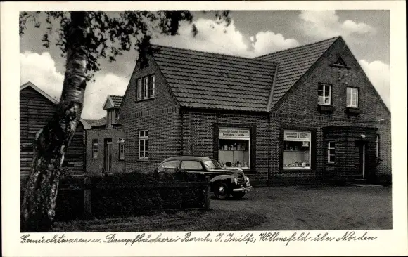 Ak Willmsfeld Westerholt in Ostfriesland, Dampfbäckerei Beruh, Automobil