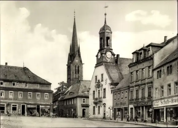 Ak Wilsdruff in Sachsen, Kirche, Uhrenturm, Platz, Geschäfte