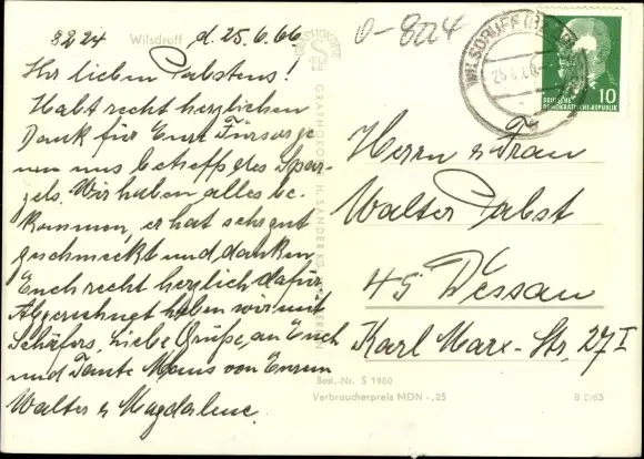 gelaufen 1966, untere Kante bestoßen, sonst guter Zustand