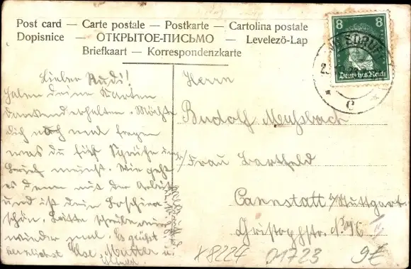 Zustand, siehe Scan, gelaufen, 1923 - ca 14 cm X 9 cm
