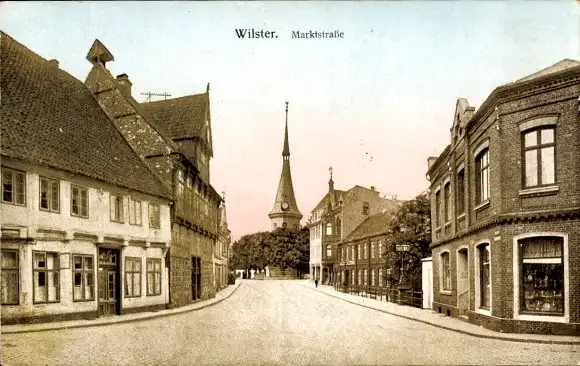 Ak Wilster in Holstein, Marktstraße, Kirchturm, Geschäft