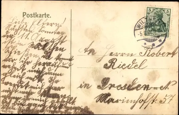 Zustand, siehe Scan, gelaufen, 1907 - ca 14 cm X 9 cm