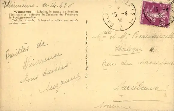 Ak Wimereux Pas de Calais, Kirche, Hotel Belle Vue