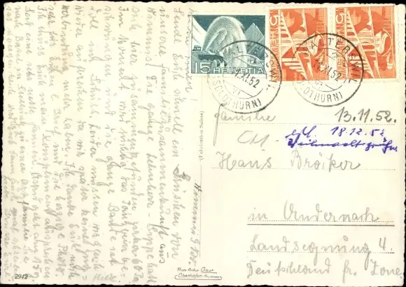 Zustand, siehe Scan, gelaufen, 1952 - ca 15 cm X 10 cm