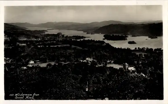 Ak Windermere Cumbria England, Panorama von Orrest Head