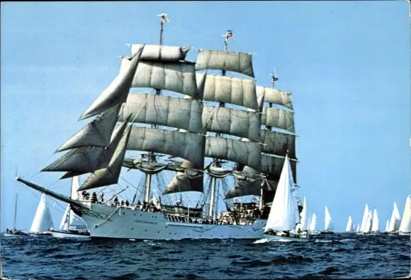 Ak Windjammer auf der Ostsee, Dreimaster, Segelboote, Regatta
