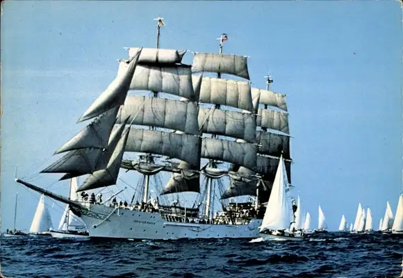 Ak Windjammer auf der Ostsee, Dreimaster, Segelboote, Regatta