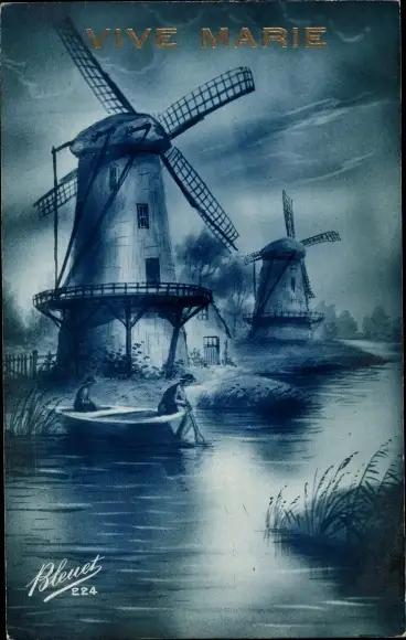 Ansichtskarte, Postkarte, Windmühle, Windmühlen, Ruderer, Ruderboote, Ruderboot
