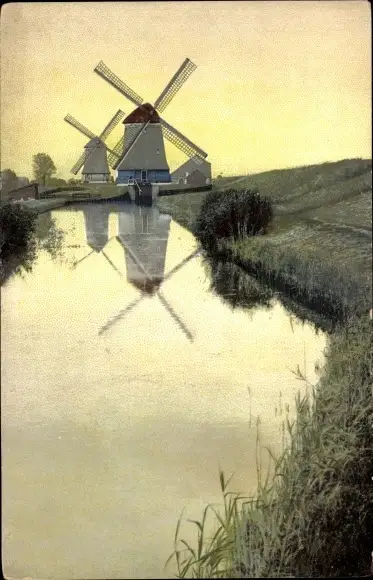 Ak Windmühlen am Fluss, Nenke und Ostermeier 1415