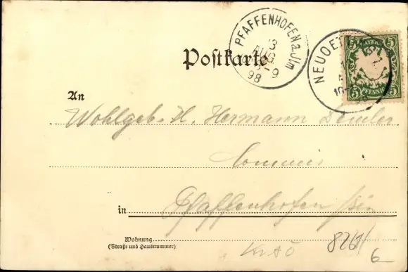 gelaufen 1898, leicht fleckig, sonst guter Zustand