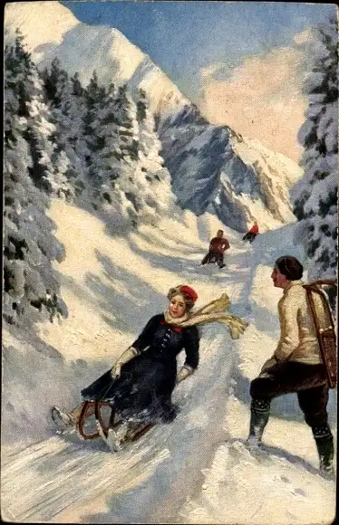 Ak Winterlandschaft, Schlitten