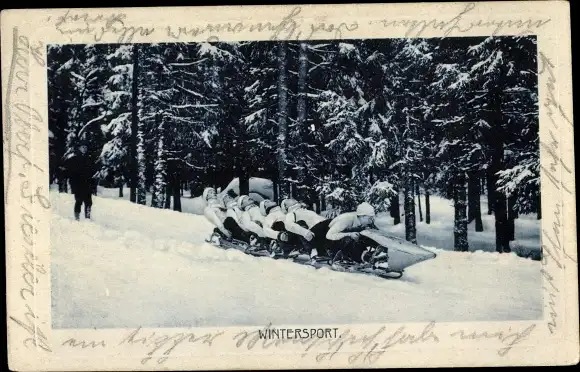 Ak Wintersport, Männer auf einem Bob