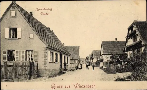 Ak Wintzenbach Winzenbach Elsass Bas Rhin, Spezereihandlung, Straßenpartie